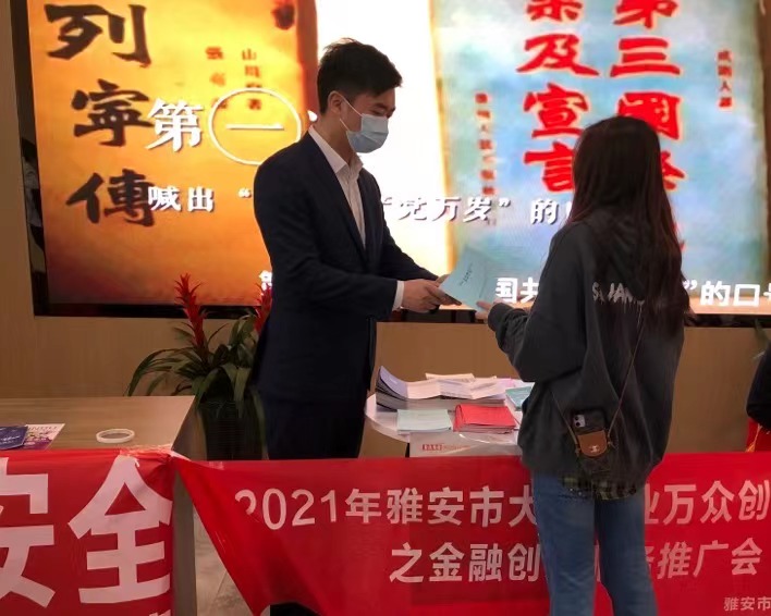 2021年10月15日至19日,雅安開展2021年大眾創(chuàng)業(yè)萬眾創(chuàng)新活動周活動,主題是“高質(zhì)量創(chuàng)新創(chuàng)造、高水平創(chuàng)業(yè)就業(yè)”。期間,市擔(dān)保公司充分發(fā)揮融資擔(dān)保作用,為廣大創(chuàng)業(yè)者提供個性化的服務(wù),積極營造大眾創(chuàng)業(yè)萬眾創(chuàng)新的良好氛圍。